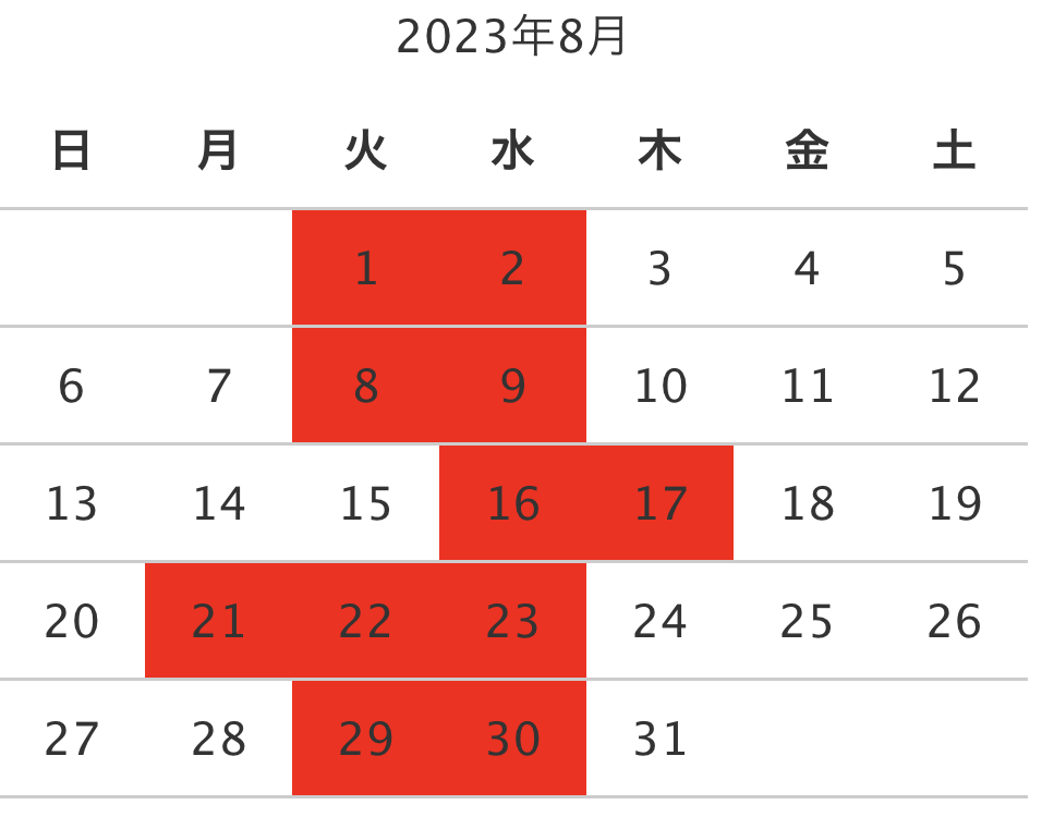 2023年 お盆期間含む8月の営業日について
